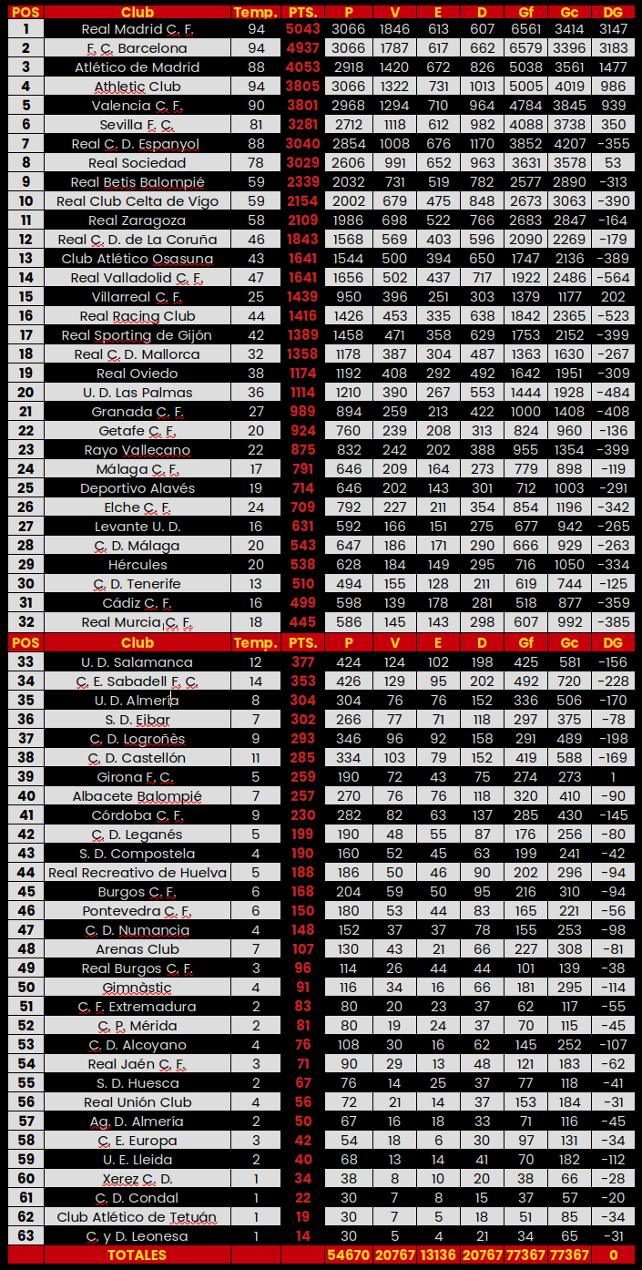 han sido elaborados por el usuario Lasnamae012 del Foro de A.R.E.F.E. (Asociación para la Recopilación de Estadísticas del Fútbol Español). En este enlace pueden descargarse el documento Excel por él confeccionado.
