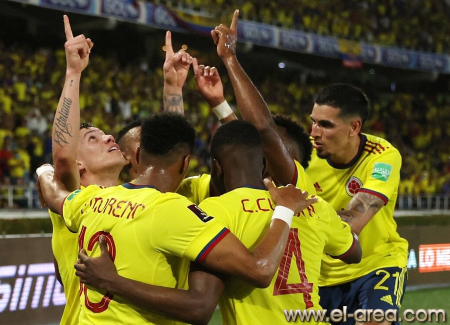 39' Luis Díaz, 72' Miguel Borja y 90' Mateus Uribe |