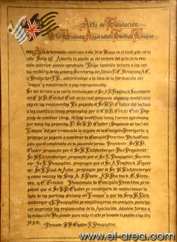 El fútbol rioplatense creció y se desarrolló de la mano hasta nuestros días, tanto en la organización de torneos locales como internacionales, incluso a nivel de selección nacional. Uruguay en el sentido formal se apoyó en su similar vecina para sentar las bases y después hacer camino al andar, como por ejemplo en los aspectos organizativos y para conformar el primer reglamento. “Acta de la reunión celebrada el día 30 de marzo en el local en el local sito en la calle Solís 65. Abierta la sesión se dio lectura del Acta de la reunión anterior, siendo aprobada. Diose [sic] también lectura a las cartas recibidas de los Sres. Secretarios del Albion FC, Uruguay AC y Deutscher FK adhiriéndose a la idea de la formación de la League y nombrando a sus representantes. Se dio lectura a la carta enviada por el Sr. R. Rockbuch Secretario del C.U.R. Cricket Club en la cual proponía algunas modificaciones en los reglamentos”. Otro de los pasos a dar era conseguir una copa para el torneo a disputarse, para lo cual los propios clubes tuvieron que invertir una suma importante para la época. La copa fue importada desde Inglaterra.
