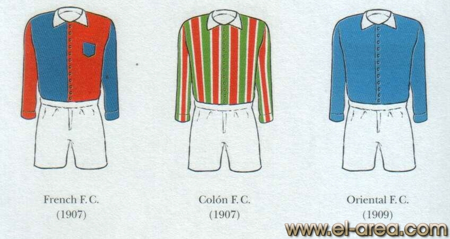 Nota: Las imágenes correspondientes a la indumentarias de los equipos están extraídas del libro de Juan Carlos Luzuriaga "Orígenes y desarrollo del Fútbol en Uruguay. Nuevas miradas (1870-1920)" y han sido publicadas con su permiso y el de la editorial Alter Ediciones. En este enlace pueden leer online y descargarse un pdf con la presentación de la mencionada obra (4,22 Mb y 9 páginas).