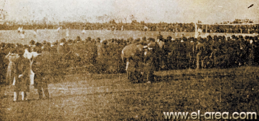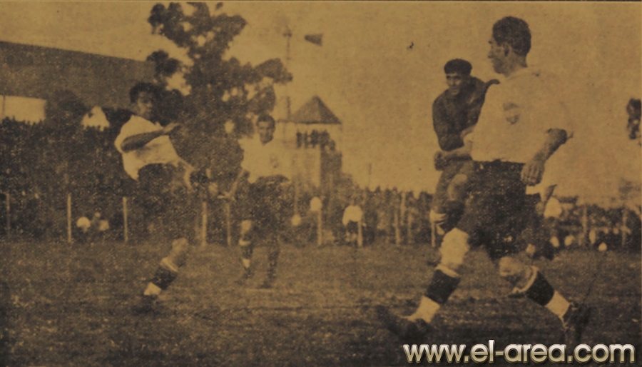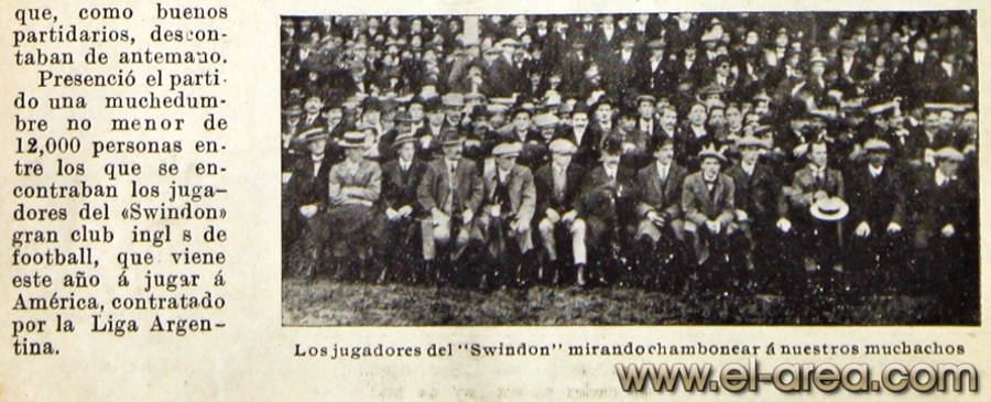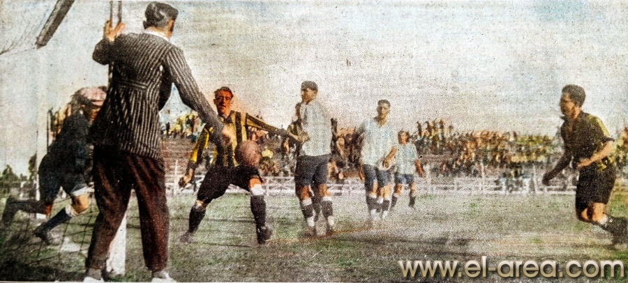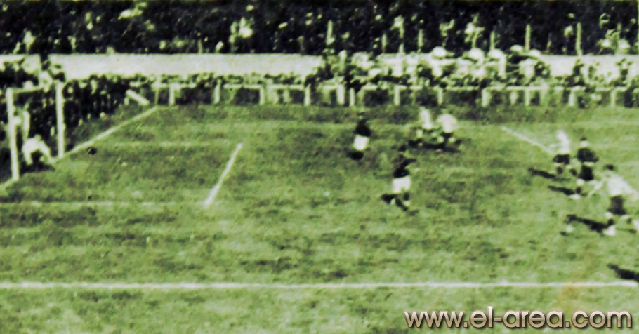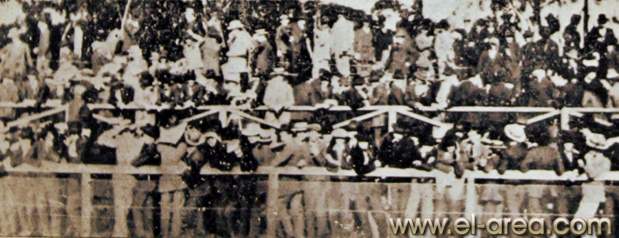 Las multitudes acudían imantadas por el bello despliegue de los players en el field (Fuente: 'Del fútbol heroico', libro de Juan Antonio y Mateo Magariños Pittaluga - Talleres gráficos de A. Ruíz y Cía., 1942 - 274 páginas - Coloreada personalmente online con Colourise SG) |