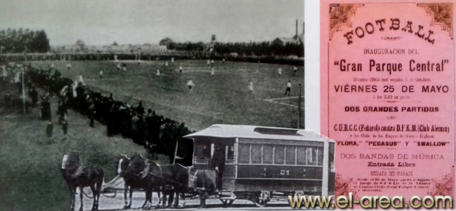 Por ejemplo, en 1899 el Albion pudo inaugurar su novel cancha en la zona que se denominó entonces Paso del Molino (hoy Prado): fue el primer estadio de fútbol en Uruguay. Aunque para Albion, salir de Punta Carretas fue el principio del fin de su supremacía: “El terreno de juego estaba ubicado sobre la avenida 19 de Abril, aproximadamente entre las actuales calles Adolfo Berro e Irigoitía. A sus fondos corría un pequeño arroyo, el Quitacalzones, que vertía sus aguas en el cristalino y a veces caudaloso Miguelete” (3). Toda la infraestructura para este escenario fue construida justamente por la empresa tranviaria de la zona. Algo parecido sucedió con el Parque Central, que como nos cuenta Luis Prats en su libro Montevideo, La Ciudad del Fútbol, “en el origen, el Parque Central era el campo del Deutscher Fussball Klub –la institución de la colectividad alemana–, cedido por sus compatriotas de La Transatlántica en los días en que el fútbol comenzaba a organizarse formalmente. La empresa de tranvías publicó un aviso en la prensa montevideana, el 3 de mayo de 1900, informando que había llamado a propuestas para la construcción de ‘un gran palco y chalet en un terreno de su propiedad sobre el camino Ciblis, con destino a campo de Football’. La propuesta aceptada fue la de la empresa de Eugenio Meirana e hijo, con planos y dirección de Félix Elena” (7).