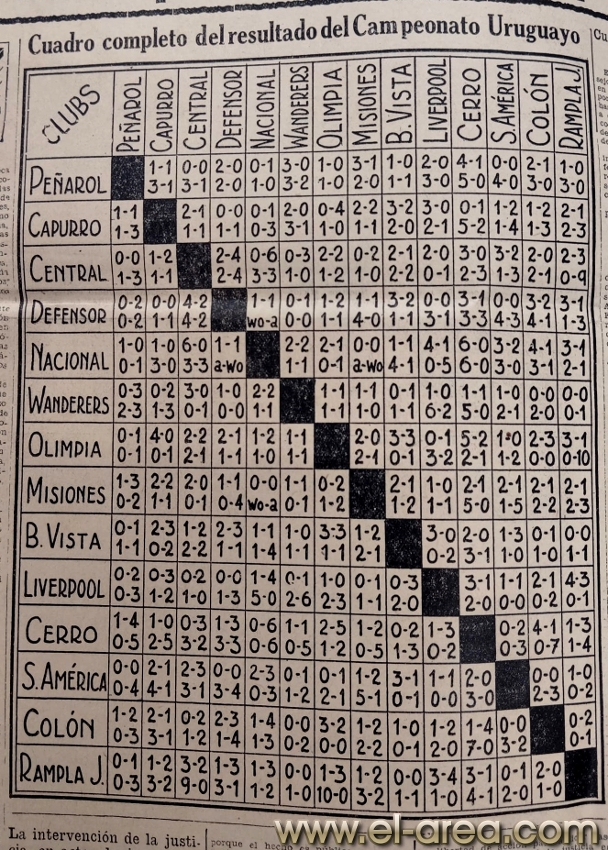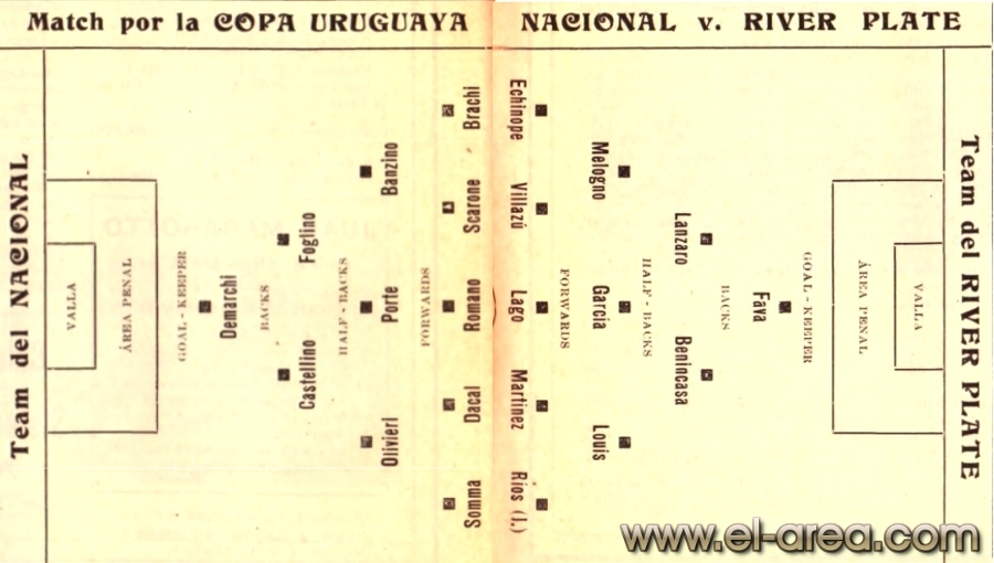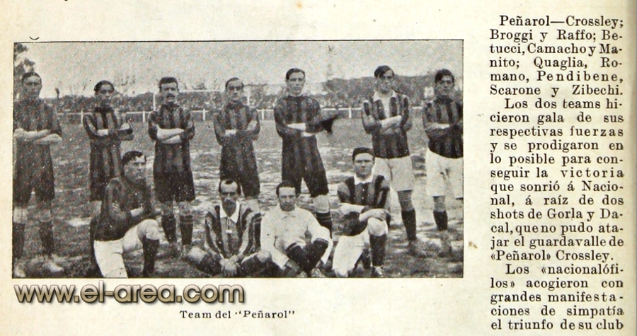 El tercero quedó en amistoso porque se registraron incidentes en el preliminar (Nacional se impuso con gol de Zerbino el 8 de noviembre). Nacional obtuvo el título al imponerse 3-2 el 22 de noviembre, luego de dos alargues. Convirtieron Canturi, Urrestarazú y Demarchi para los albos, Canavessi y Manito para los aurinegros.