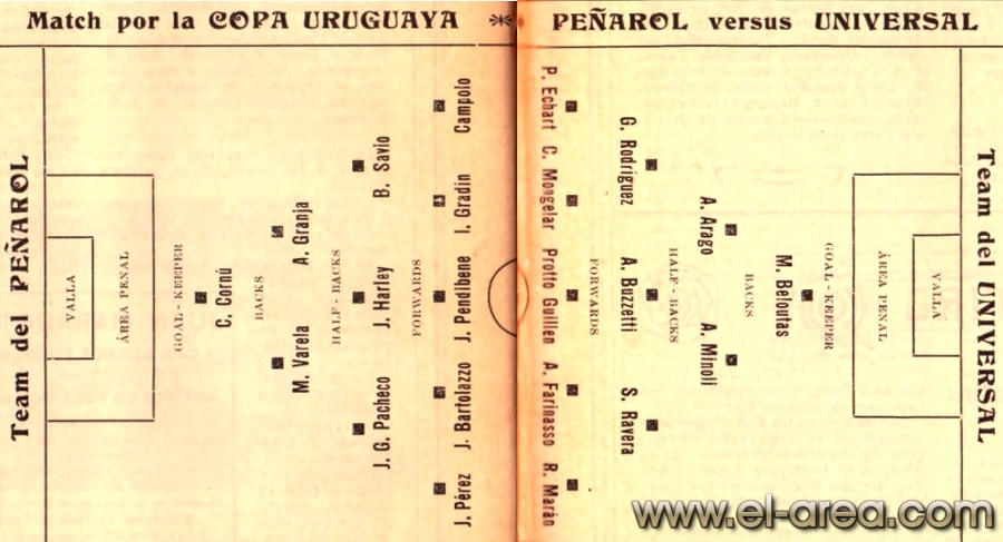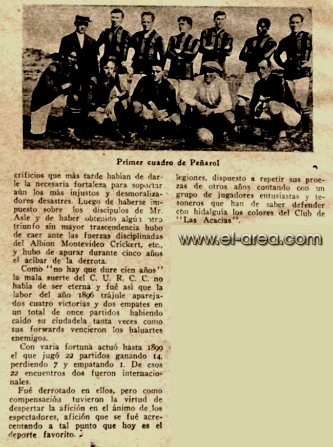 Los capitaneados por William Poole no querían que el futuro campeón terminara invicto el torneo: “El primer tanto lo obtuvo Albion a los pocos minutos de la lucha por intermedio de Juan Sardeson, empatando Peñarol casi de inmediato por shot de Davies y conquistando el gol de la victoria por consecuencia de una magistral jugada de Lewis” (8). El cierre fue ante el Uruguay Athletic, al que también goleó (9-0 y 6-0) para sumar 36 goles a favor y solo dos en contra. El torneo no tenía gran repercusión en los medios gráficos, como sí tenían los partidos internacionales u otros deportes (turf, ciclismo, cricket) una tendencia que fue cambiando a lo largo de la década. La copa entregada al campeón se logró obtener gracias a la gestión del presidente del Curcc, Frank Hudson, quien también administraba la empresa ferroviaria que dio vida a la institución aurinegra.