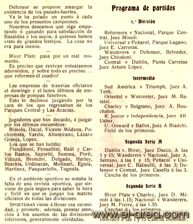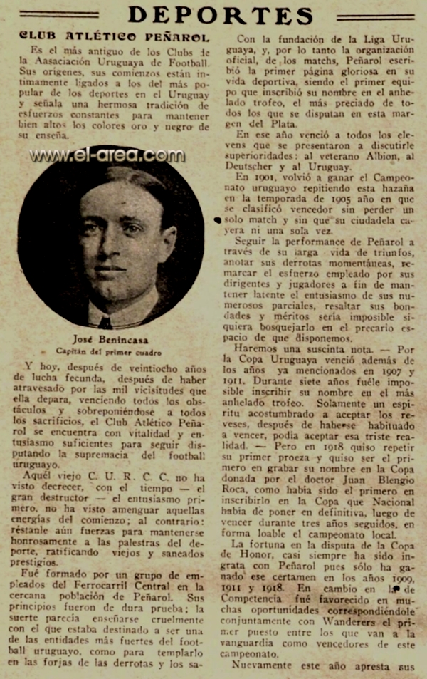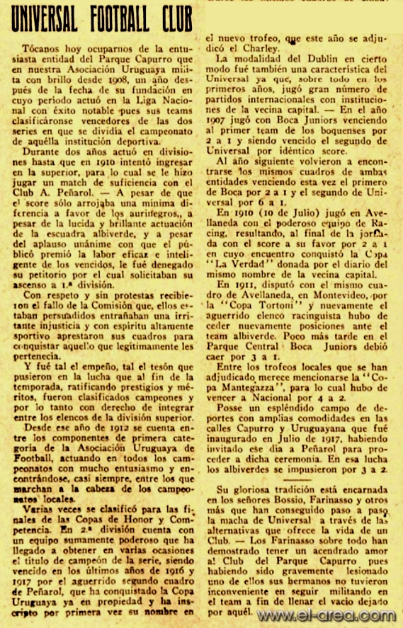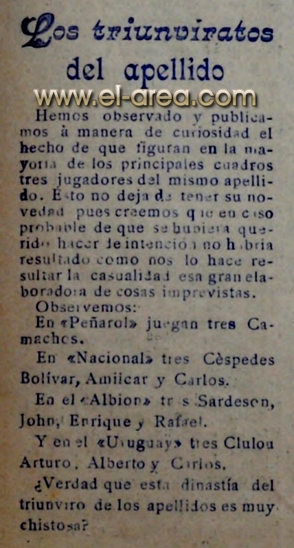 A continuación reproduzco el artículo escrito por Luis Prats, "Los grandes formaron su 'liga' propia en 1908" en Ovación, el 30.09.2018, con algunas breves acotaciones de mi autoría: