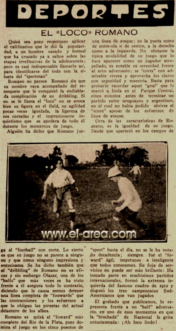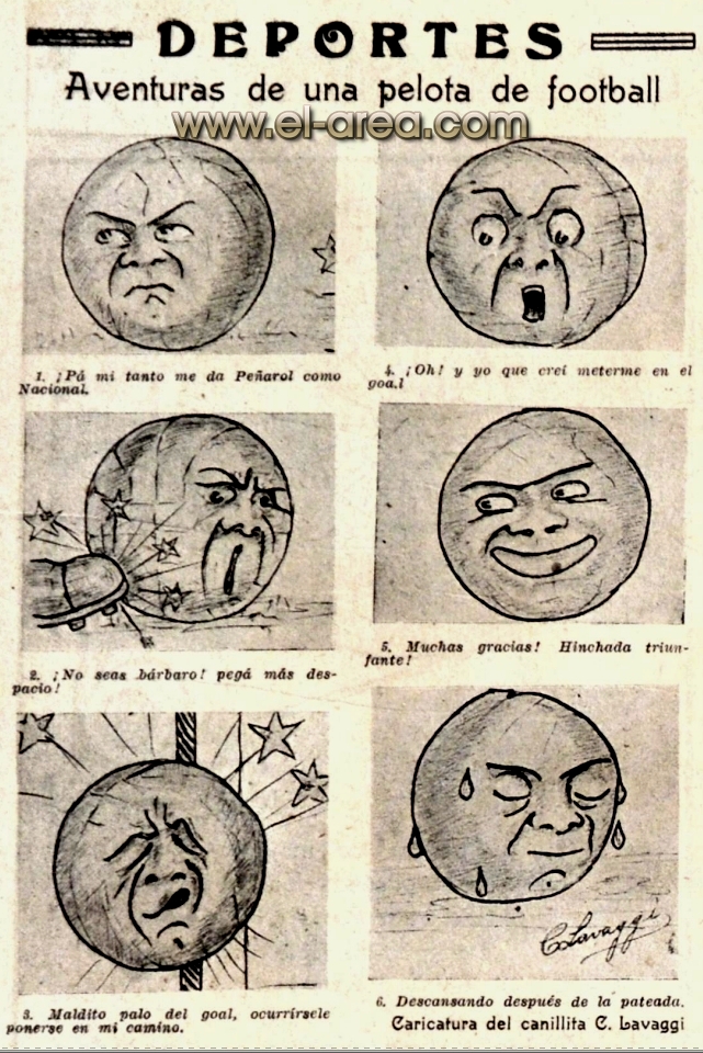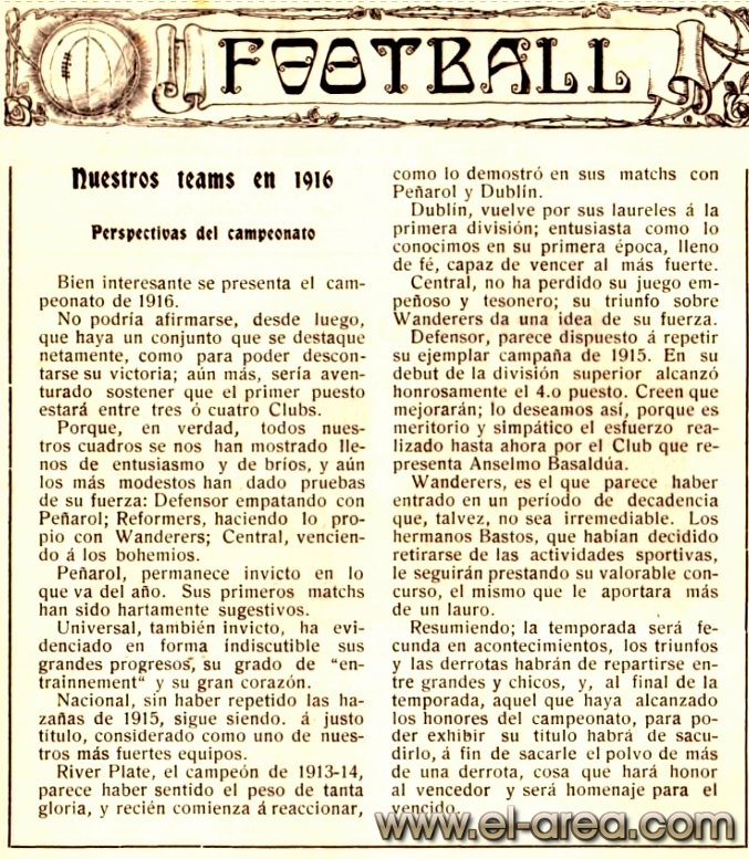 A continuación podrán observar instantáneas de partidos protagonizados por grandes equipos que han desaparecido, las fotos de algunas de las personalidades, protagonistas de dentro y fuera de las canchas, que forjaron la historia de un pequeño país ganador que deslumbró al mundo por su temple y técnica, análisis de los partidos disputados, cargados de anglicismos hoy desaparecidos, semblanzas de memorables teams y jugadores y también anuncios de las primeras firmas comerciales, muchas de ellas de nuevo cuño por el nicho que generaba este deporte, que vieron en el football, la manera de catapultar sus marcas, incluso las de cigarrillos, hoy algo impensable siquiera.