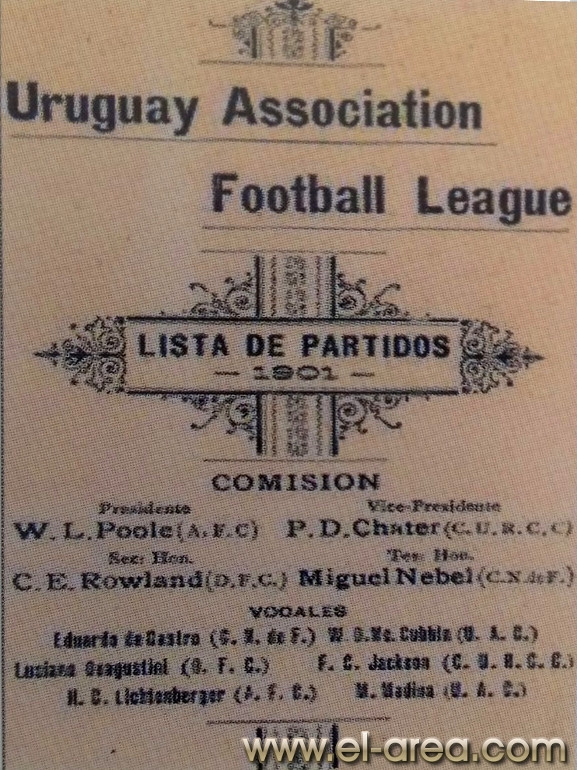 Para poner un ejemplo: en julio y agosto de ese mismo año de 1900 (1) se formaron cerca de cuarenta clubes de barrio, y recién ese año se fundó la incipiente (y con mucho acento anglosajón) The Uruguayan Association Football League, primer nombre de la actual Asociación Uruguaya de Fútbol (A.U.F.), en un país que a nivel político-social todavía no se había consolidado totalmente. Si mencionamos este inicio “formal” de nuestro fútbol corresponde dar crédito a quienes fueron grandes propulsores de él: la comunidad británica en Uruguay, que ya impulsaba desde hacía dos décadas este deporte, principalmente a través de su práctica en los colegios signados a ellos. Explicar este último punto en particular como corresponde merece su espacio y excede este tema.