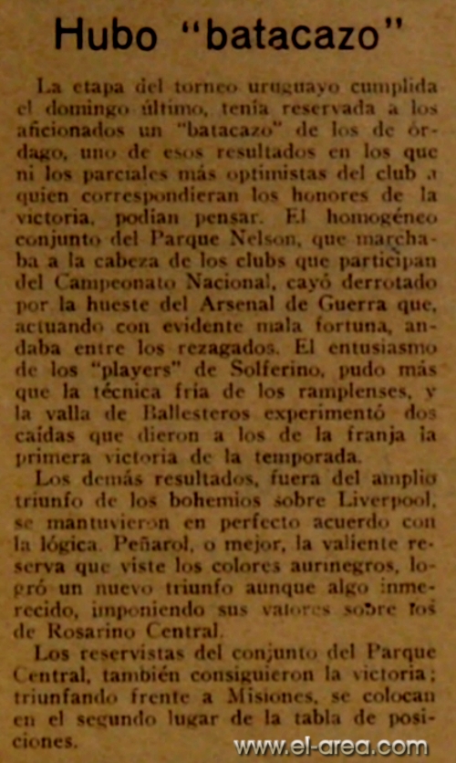 El 12 de noviembre de 1922, Peñarol venció 2-1 a Racing por la Copa Municipio de Avellaneda. Dos días después, y a causa de la realización de este cotejo, la Asamblea de la AUF desafilió a Peñarol y Central, dando comienzo al cisma del fútbol uruguayo (Fuente I Padre y Decano).