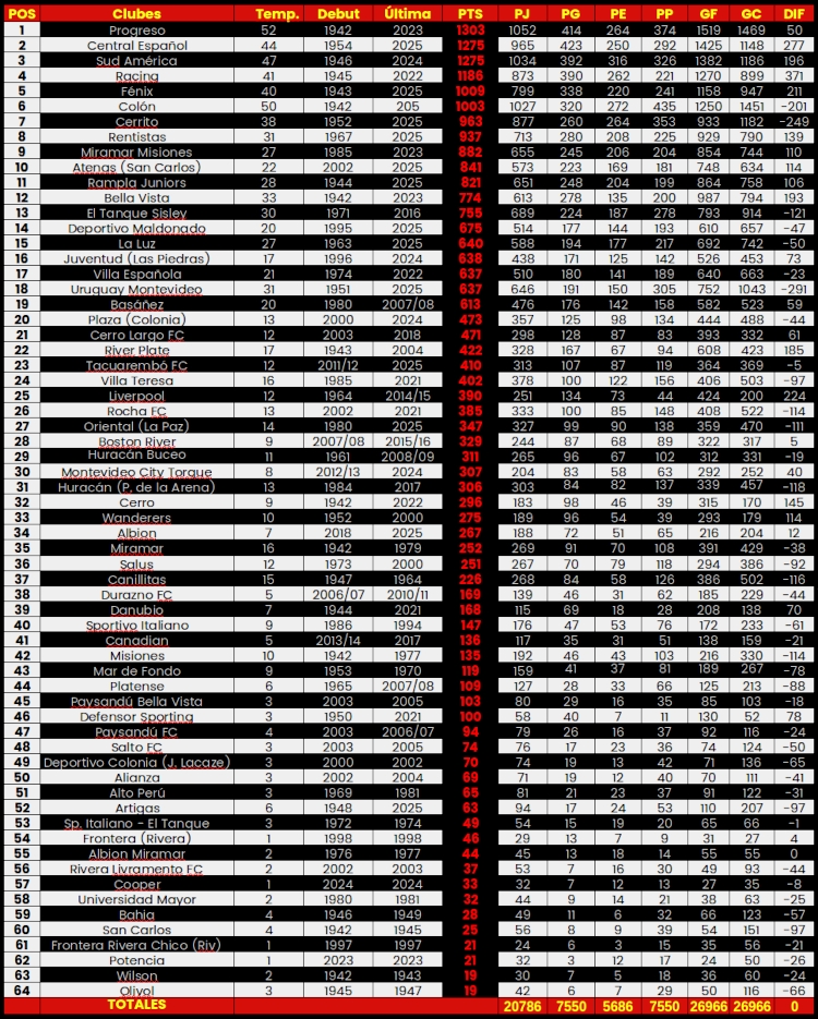 Los ocho equipos fundadores de la competencia fueron: Bella Vista (que había descendido el año anterior), Cerro, Colón, Miramar, Misiones, Progreso, San Carlos y Wilson.